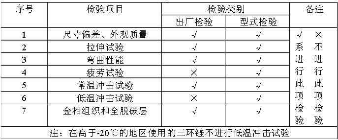 12.2.2 型式檢驗由國家授權的質量監督機構負責進行,三環鏈經檢驗合格,取 得產品合格證后方可銷售和使用。