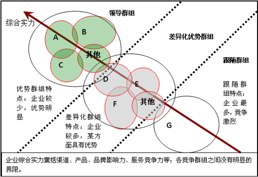 (四)同類產品競爭群組分析(通過對重點生產企業的綜合實力的評價,將企業分為三個組群,用以劃分企業所處的市場地位,明確發展目標及未來發展規劃)