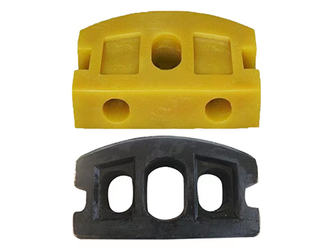 聚氨酯礦車碰頭采用的聚氨酯彈性體,是一種介于橡膠和塑料之間的新型高分子合成材料,它既具有塑料的高強度又具有橡膠的高彈性,具有耐磨、耐油、耐酸堿、耐老化、耐臭氧、耐低溫、耐撕裂、耐抗擊、高彈性、吸振力強、負載支撐容量大等物理性能。