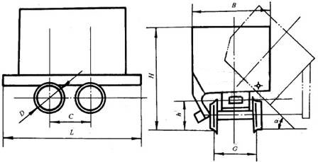 3.1 礦車的結構型式為單側曲軌側卸式。