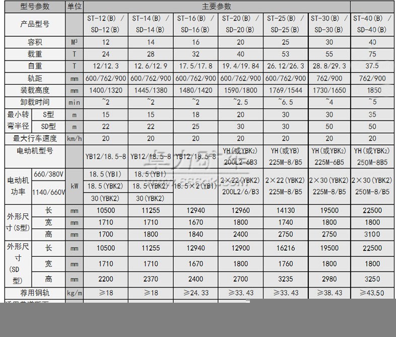 大型隔爆梭式礦車技術參數表